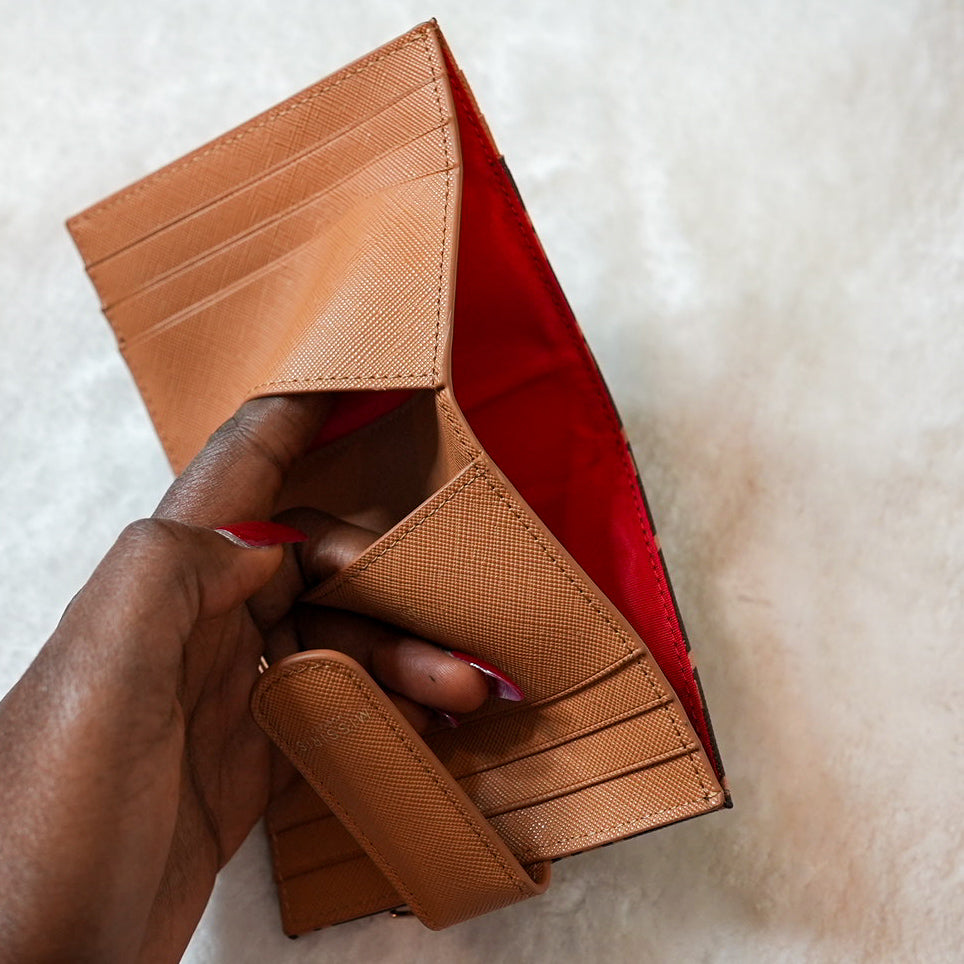 Fabriqué en cuir végane de première qualité et orné du motif « M » signature Missiris, ce portefeuille raffiné se glisse facilement dans votre sac Missiris préféré. Ses multiples compartiments permettent de garder vos cartes, billets et reçus bien rangés, tandis que son rabattement magnétique assure une fermeture sécurisée.