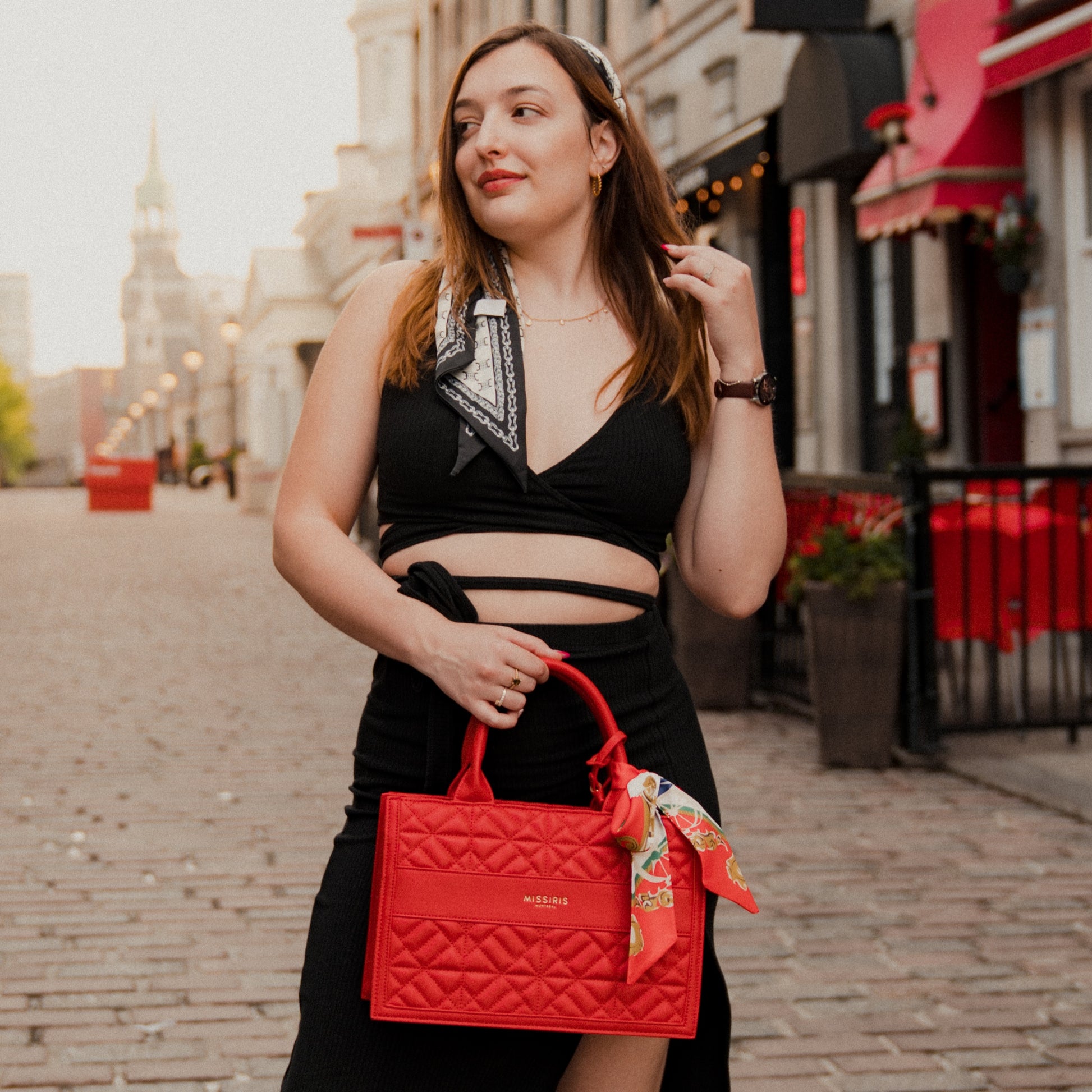 Le foulard signature ajoute une touche raffinée à ce sac déjà ultra chic! Confectionné à partir de matériaux haut de gamme, il allie durabilité et élégance. Sa silhouette structurée permet de conserver sa forme, tout en gardant vos essentiels bien organisés et en sécurité.
