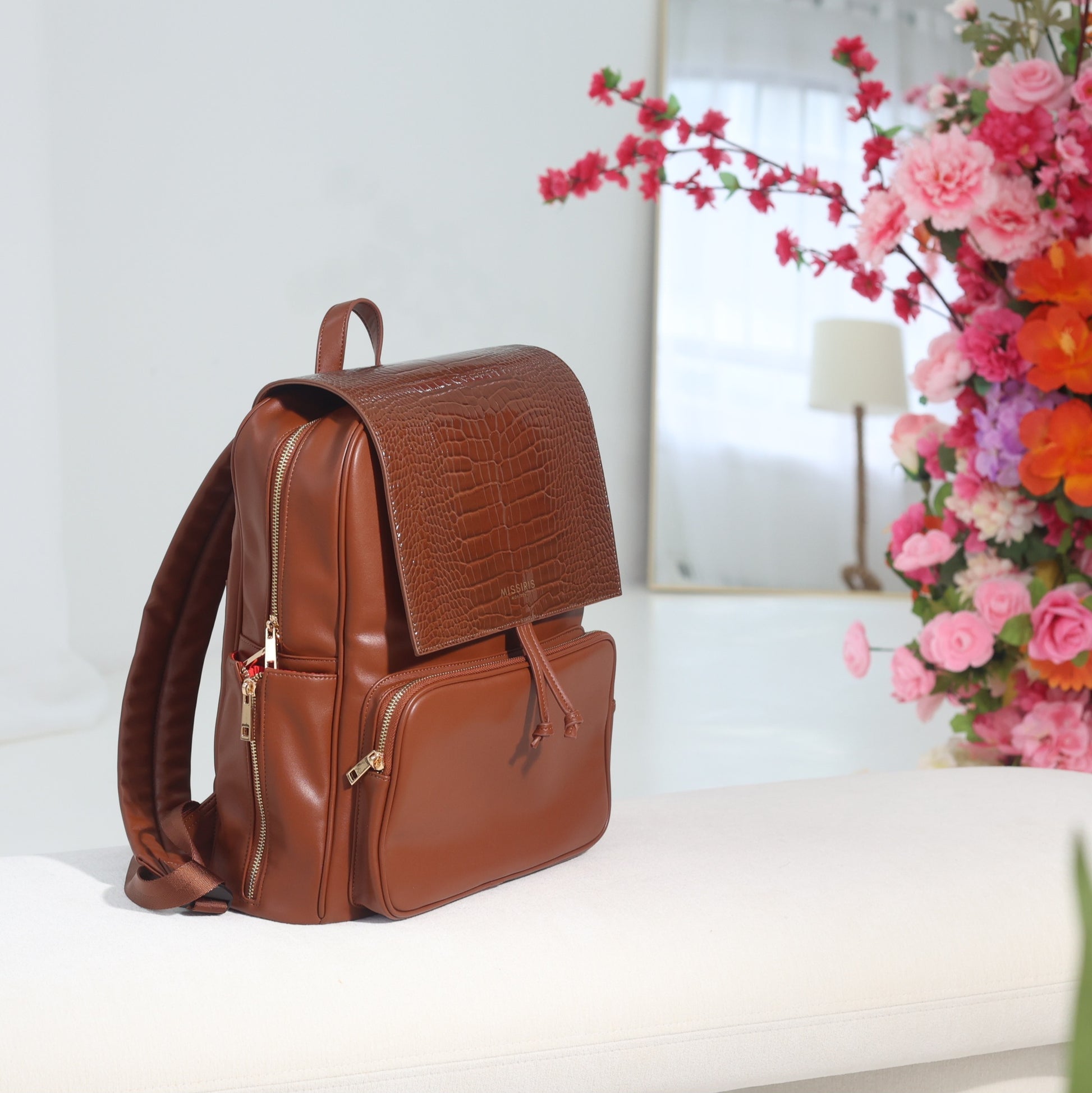 Confectionné en cuir vegan de qualité supérieure, Miss Cléopâtre allie style intemporel et détails pratiques pour vous garder organisée du matin au soir. Sa silhouette structurée, ses lignes audacieuses et ses compartiments astucieux en font bien plus qu’un simple sac à dos — c’est une véritable déclaration.