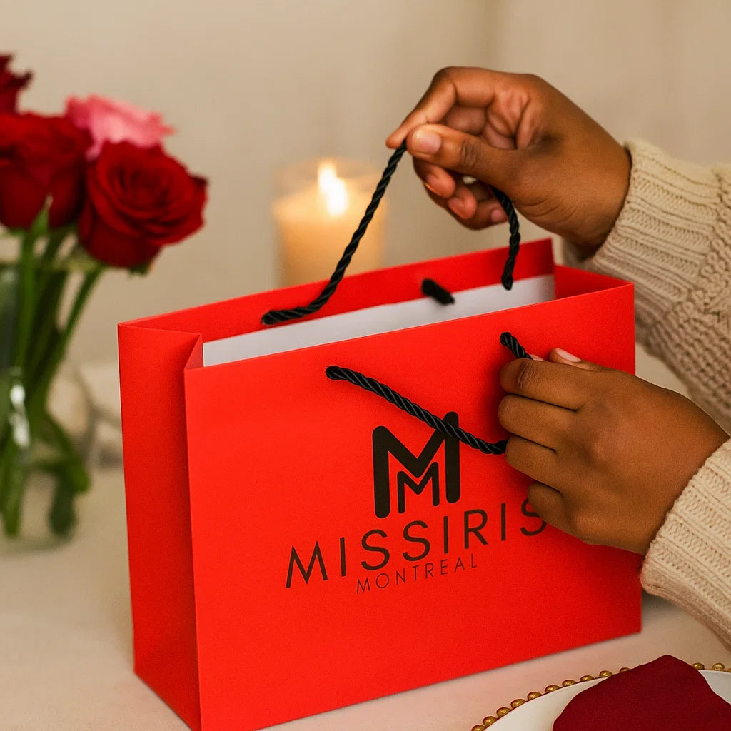 At MissIris, we see packaging as an extension of the luxury experience. Each bag comes in an elegant, protective box, with a refined dust bag to preserve it over time. We also make responsible choices: our boxes and fillings are made from recycled and recyclable materials. We also prioritize local sourcing, whenever possible. All orders are packed at our warehouse in Repentigny, Quebec, Canada. Receiving a MissIris bag is therefore both a refined and conscious experience, from the very first moment you unveil your new favorite bag.