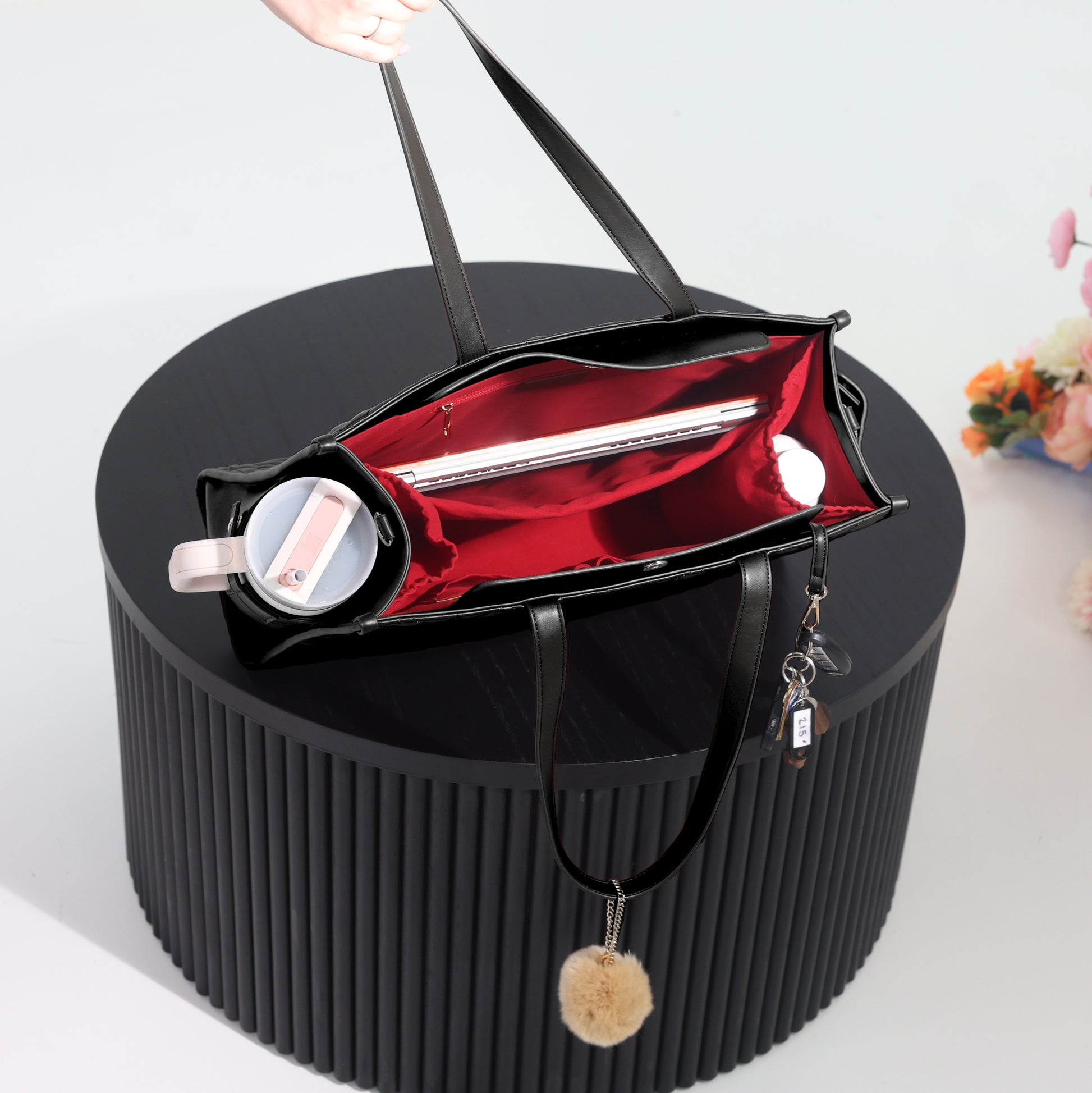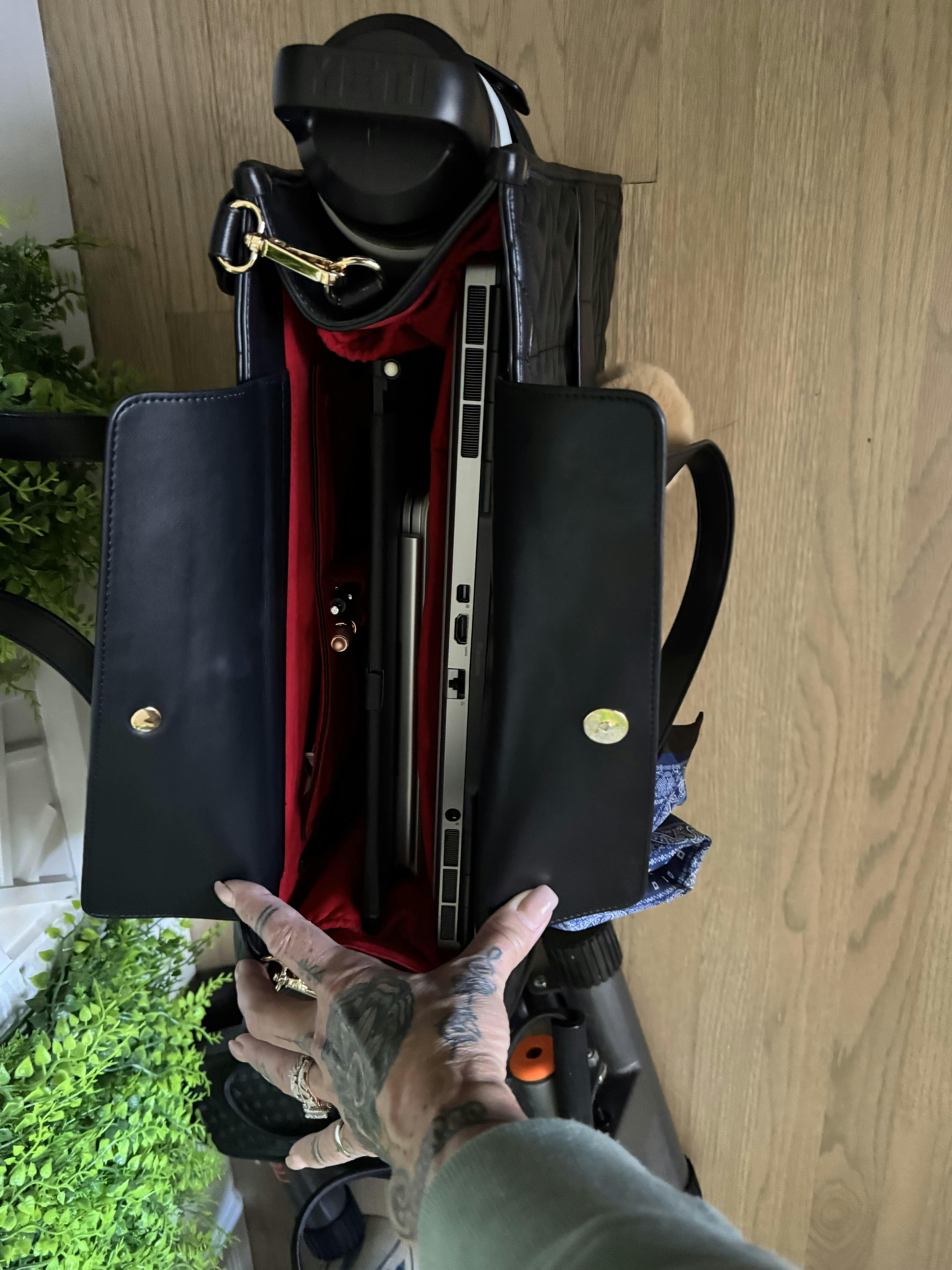 Crafted from premium vegan leather, Miss Aurora offers structure and softness all at once. Inside: clever compartments to keep everything organized. Outside: a side pocket made to fit your favorite tumbler or water bottle — because hydration and style go hand in hand. ☕💼