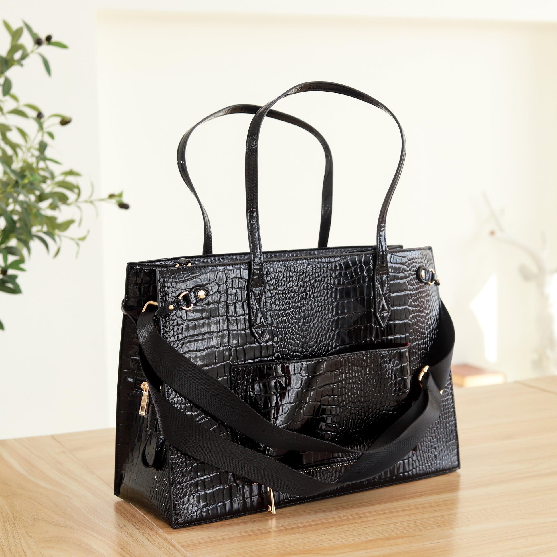 MATERIALS: Body - Faux Crocodile PU (Vegan Leather), Lining - Polyester, Strap - Nylon